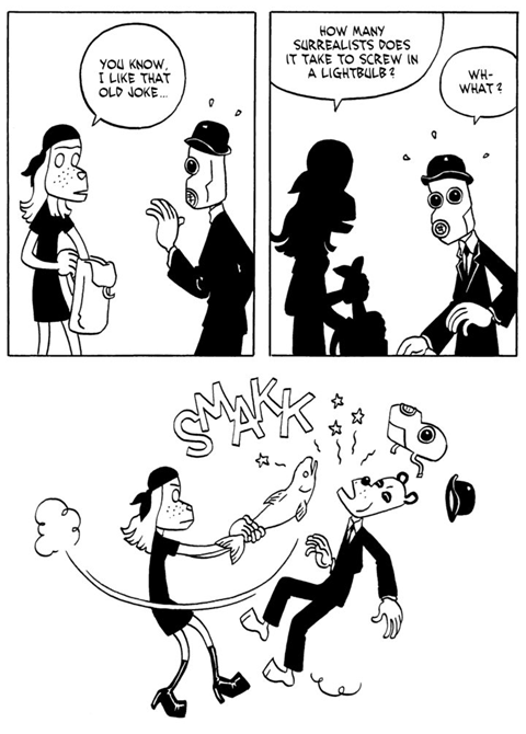 Last year, I read less European comics than usual and the best ones I’ve read haven’t been translated yet (like the abovementioned Parker: La proie), so this list is particularly US-centric, even for Gotham Calling’s standards (manga remains my perennial blind spot, with a few exceptions). Still, there was a new book by Jason, the Norwegian genius behind masterpieces such as Sshhhh!, You Can’t Get Here from There, Low Moon, and, of course, I Killed Adolf Hitler. If you’ve read those or any of the other dozens of books Jason has put out, you know what to expect: clean lines, simple layouts, minimalist art, anthropomorphic dogs and birds standing in for humans, and surreal stories told with a deadpan style. The man is nothing if not consistent.