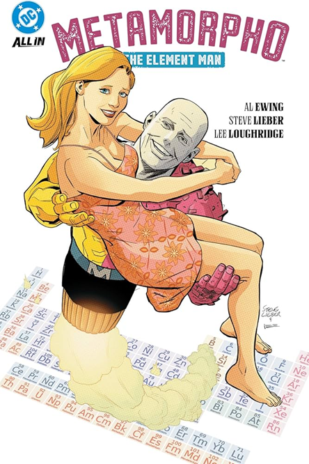 Speaking of 1960s’ comics – Al Ewing wrote the latest reboot of Metamorpho, the Element Man, and Steve Lieber drew it in a style similar to that of Bob Haney and Ramona Fradon back when they created the character, in the Silver Age. Part of the joke is that this series is nevertheless very much set in the present, updating the old cast to our current era of online influencers and AI hysteria, including not only Rex ‘Metamorpho’ Mason, a superhero with the goofy ability to transform himself into any element of the periodic table, but also his girlfriend Sapphire Stagg, her tech millionaire father Simon Stagg, and their servant Java, a defrosted Neanderthal who is also in love with Sapphire (one of DC’s weirdest love triangles).