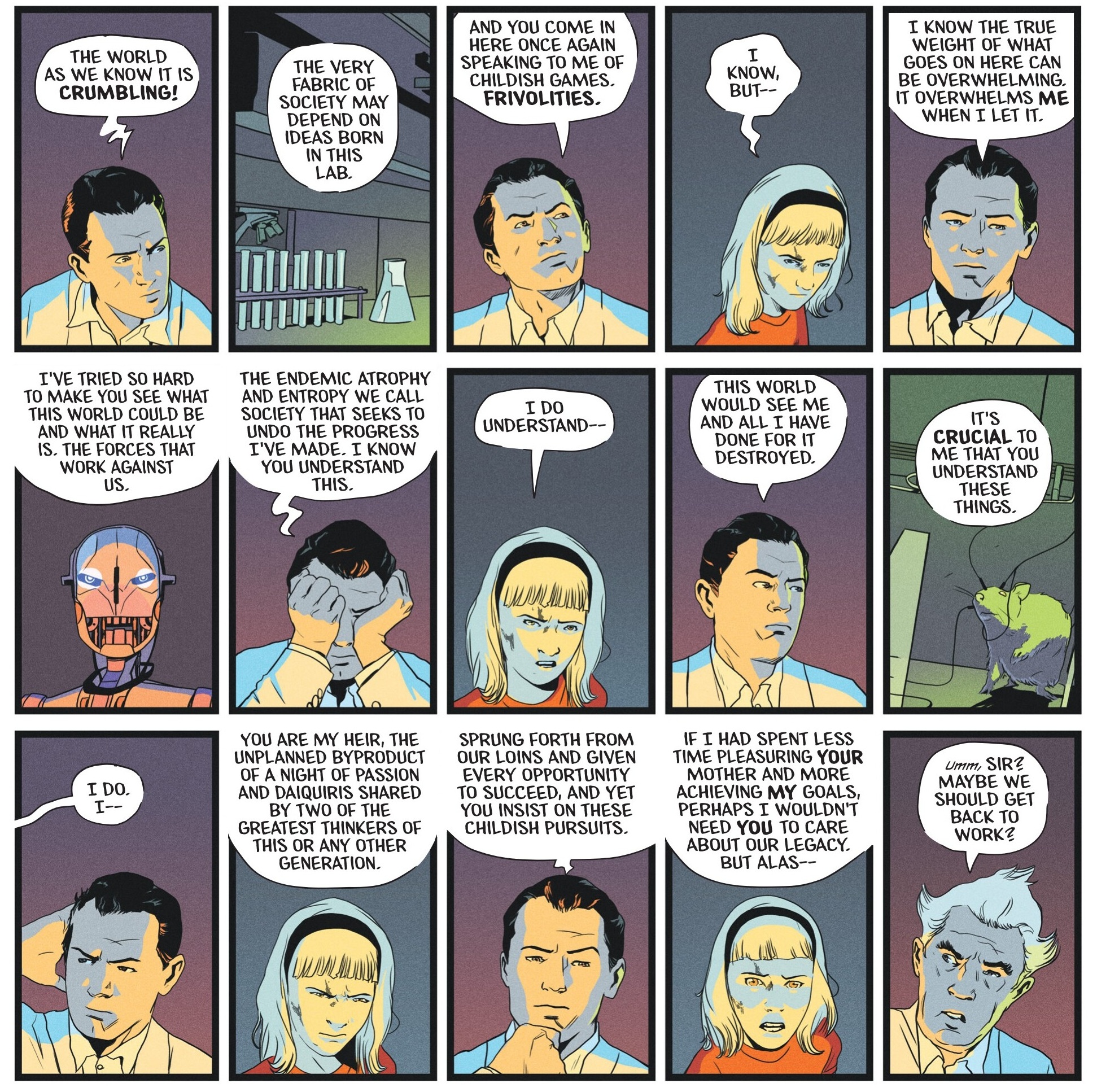 The other form of subversion has to do with the overall tone of the book, where dark comedy is often combined with absurdist dialogue delivered with a straight face (and with a healthy dose of foul language).