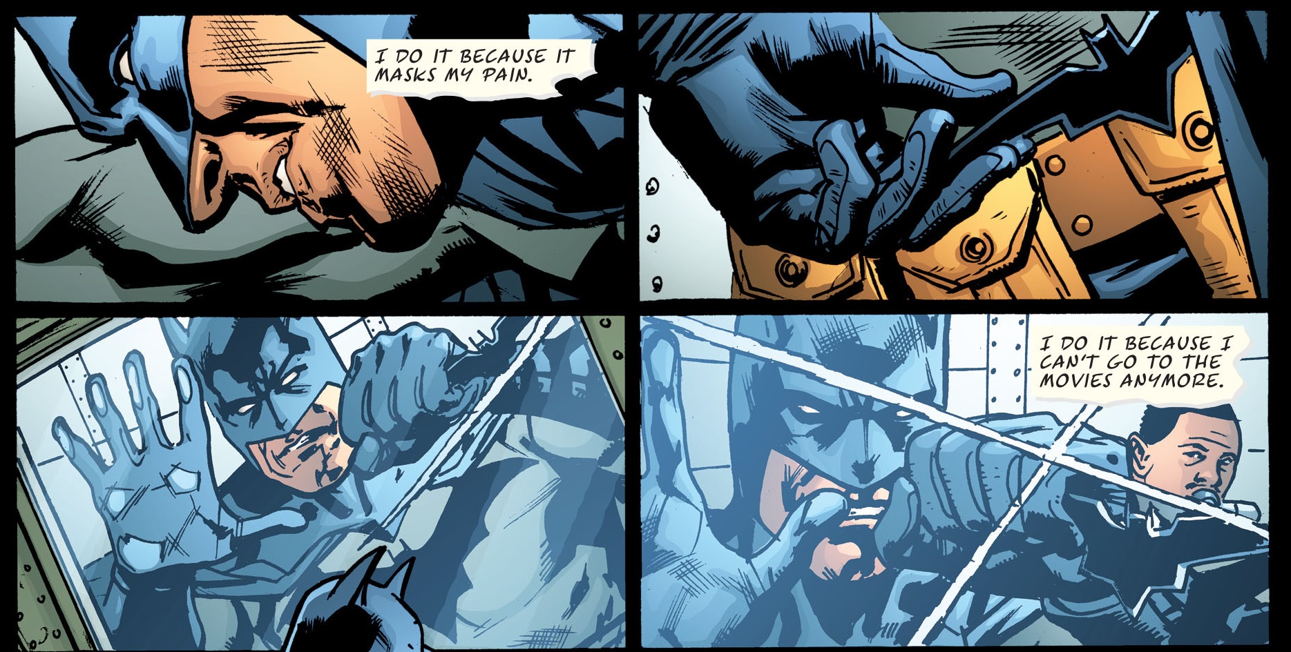 Indeed, Indigo Sunset was ultimately a metafictional love letter to the rich history of the medium, from Tijuana bibles to comics’ ironic appropriation by pop art. Not only that, but Veitch also sneaked in quite a few nods to other series published by America’s Best Comics (Top Ten, Promethea, Tom Strong) as well as to earlier Greyshirt adventures. Notably, the second issue was packed with winks to the above-mentioned ‘How Things Work Out,’ including a page that revisited that story’s layout of the interior of Spats Katz’s building: