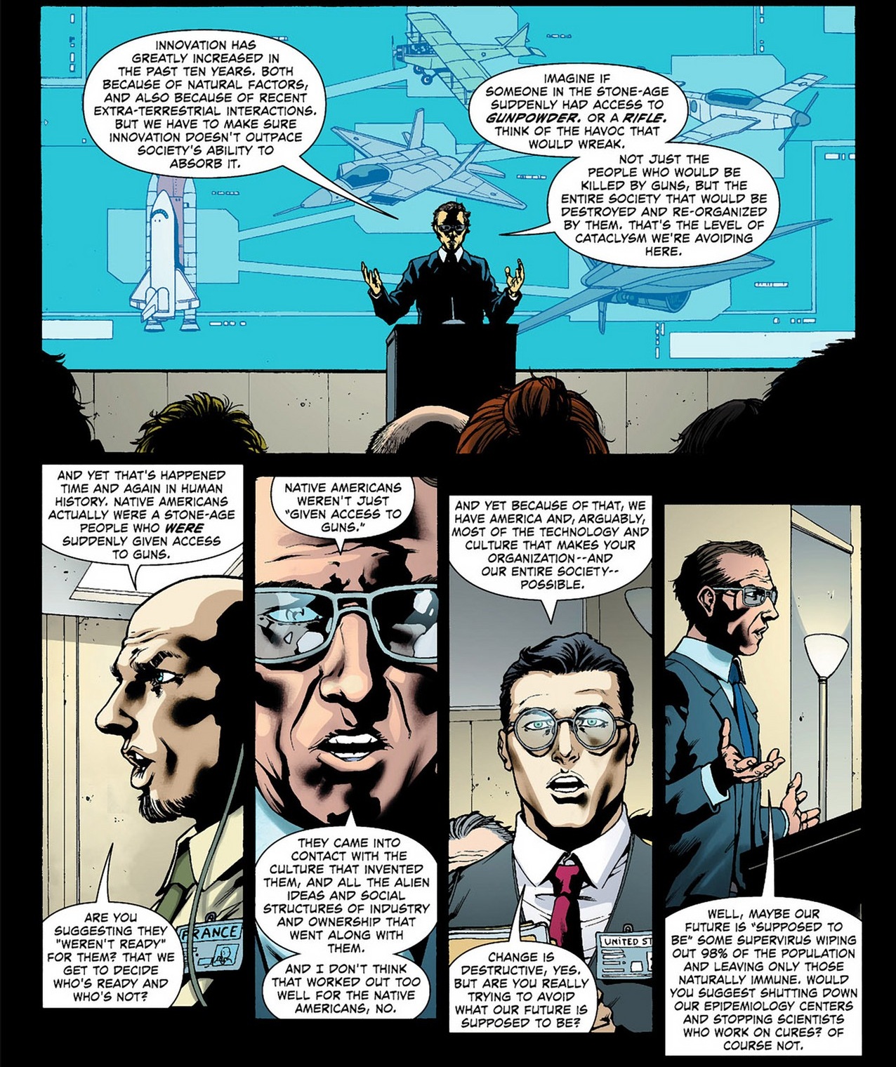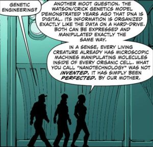 These were all new characters and there weren’t continuity links to previous incarnations, but, intertextually, the use of the name and of a similar logo essentially framed emergent, out-of-control technology as a new fascist-like enemy. And, sure enough, 14 years later, those two threats now seem increasingly connected, which makes this an interesting comic to revisit.